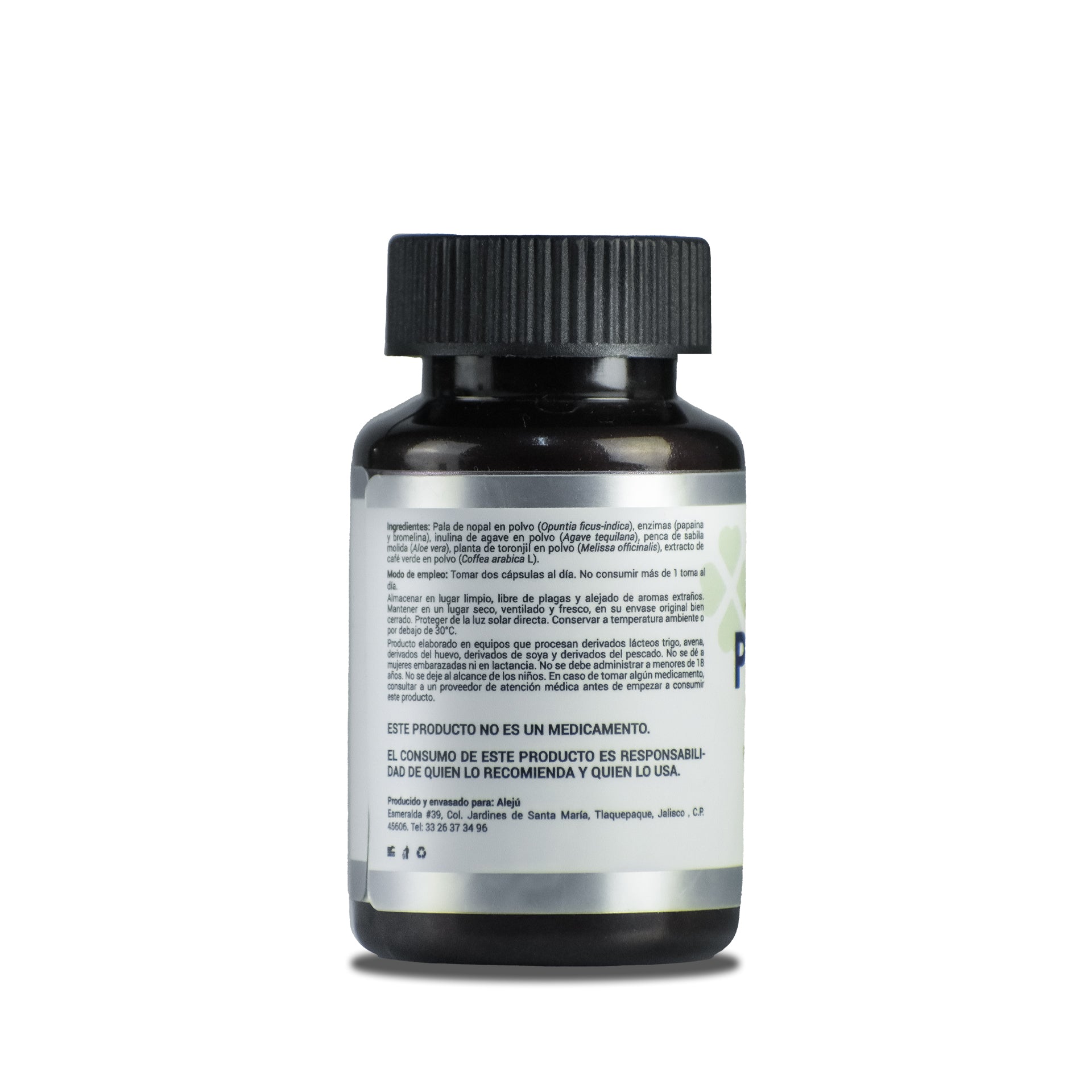 Este suplemento contiene pala de nopal en polvo, que regula el azúcar en sangre y promueve la saciedad; enzimas digestivas (papaína y bromelina), que mejoran la digestión y reducen la inflamación digestiva; inulina de agave en polvo, un prebiótico natural que fortalece la microbiota intestinal; penca de sábila molida, que hidrata y ayuda a eliminar desechos; planta de toronjil en polvo, que tiene un efecto relajante y favorece el sueño profundo; y extracto de café verde en polvo, que apoya el metabolismo y la quema de grasa sin causar insomnio.