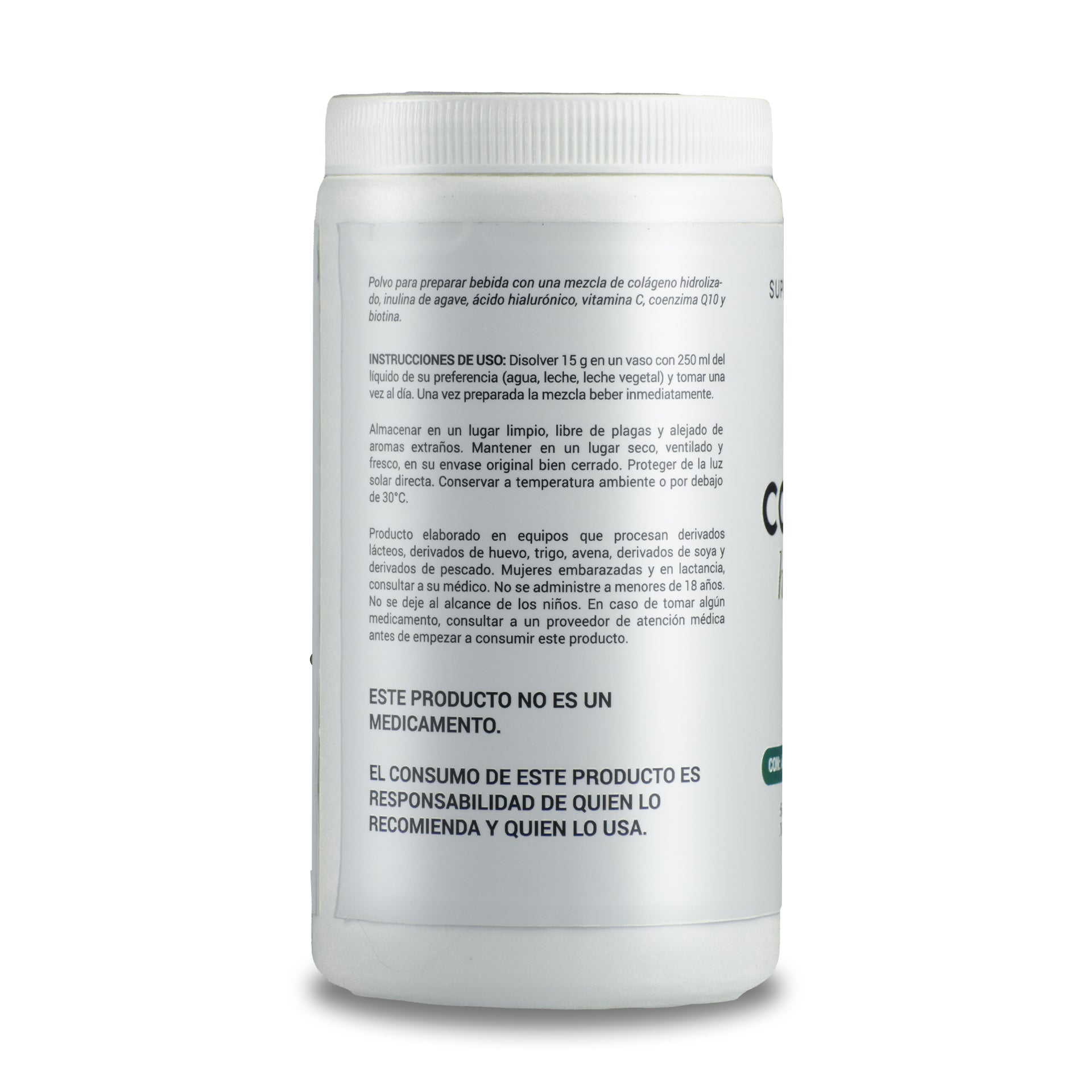 Colágeno hidrolizado, inulina de agave, ácido hialurónico, coenzima Q10 y biotina.