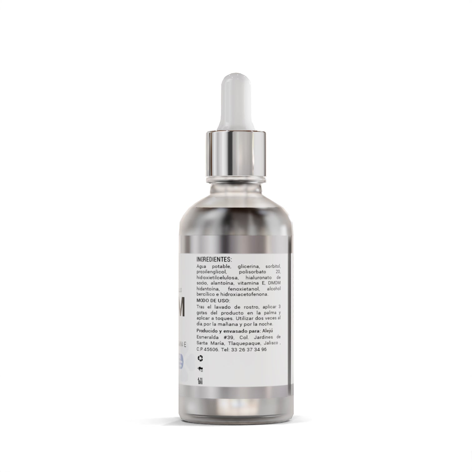 Los ingredientes de este producto incluyen hialuronato de sodio, un potente agente hidratante que ayuda a retener el agua en la piel, proporcionando volumen y elasticidad; alantoína, conocida por sus propiedades calmantes y regeneradoras, que promueve la cicatrización y reduce la irritación; vitamina E, un potente antioxidante que protege la piel de los daños causados por factores externos; glicerina y sorbitol, que actúan como humectantes para mantener la piel suave e hidratada; y hidroxietilcelulosa, que proporciona una textura sedosa al serum y ayuda a la retención de humedad.